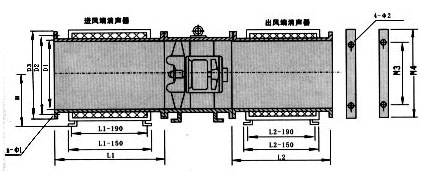 注:消聲器長度可根據(jù)用戶要求及消聲量選取,除表中規(guī)定尺寸外,也可選擇所需尺寸。