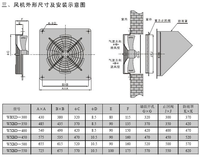 WBXD系列風機一般用于排風,如用于送風需在訂貨時另行說明。