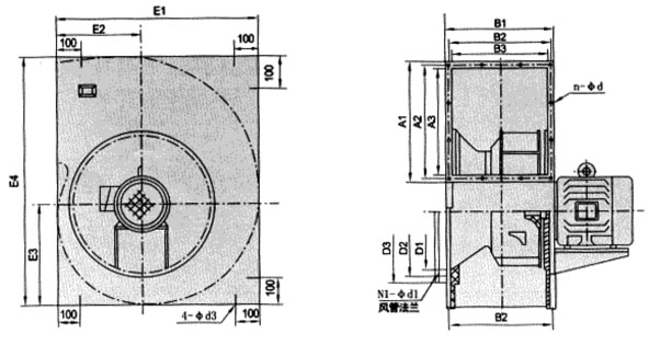 CDF-II型風機采用A式和D式電機直聯傳動、后彎式離心葉輪、設置獨有的集風器消音功能,具有風壓高、噪聲低、傳動效率高等特點,可制成防爆型。適用于單位食堂、飲食店、賓館酒樓等廚房排油煙,及廠礦企業、民用建筑等場合的送排風。