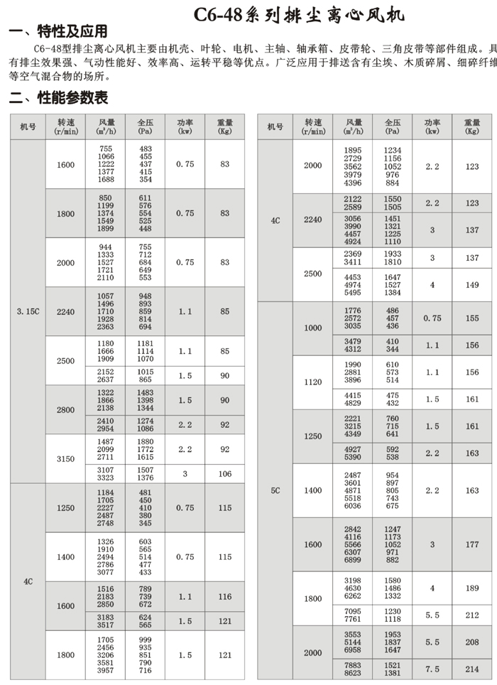 應用:排送含有塵埃、木質碎屑、細碎纖維等空氣混合物的場所