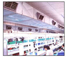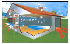 適用于敞開式及半敞開式環境使用,能夠直接輸送自然風及輸送經降溫后的冷風.室外新鮮空氣經過節能型濕簾冷風機的過濾降溫后向室內源源不斷地大量輸入,同時將室內帶有氣味、粉塵、混濁、悶熱的空氣排出室外,達到通風、換氣及增加空氣含氧量等多種效果,特別適用于高溫及人群密集的大、中型工作場所。 |