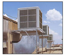 用循環水泵不間斷地把接水盤內的水抽出,并通過布水系統均勻地噴淋在蒸發過濾層上,使室外熱空氣通過蒸發換熱器(蒸發濕簾)內與水分進行熱量交換,通過水蒸發而達到降溫,清涼、潔凈的空氣則由低噪音風機加壓送入室內,其可以達到降溫4-10度的效果。 |