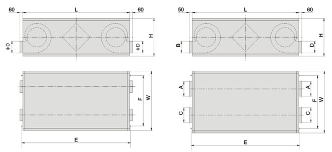特點:吊頂式安裝,通風和換氣時,能最大限度不帶走熱量、效率可達70%以上,內置防塵過濾器,有效防止灰塵及雜物進入室內,節約能源、噪聲低、運行可靠、維護簡單 |